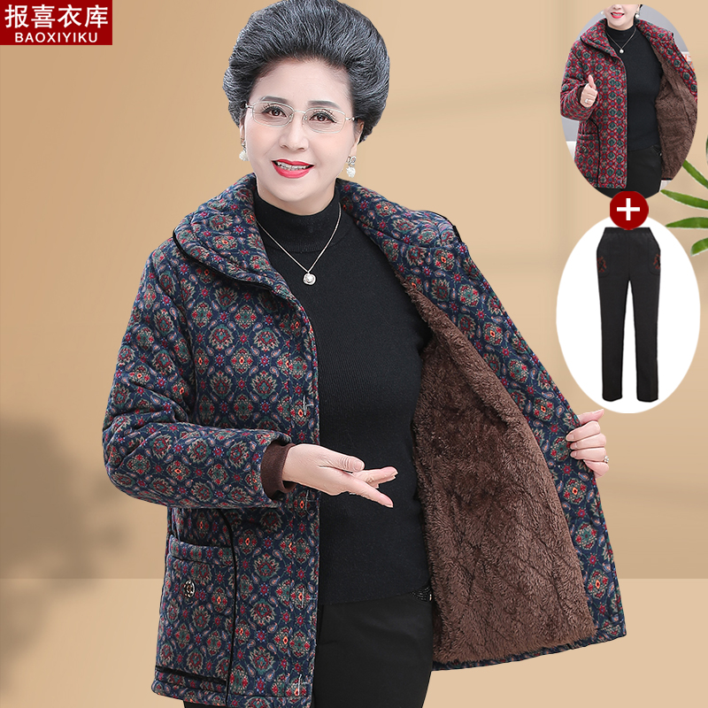 奶奶装棉衣中老年人冬装女加绒加厚老人棉袄衣服太太妈妈秋冬外套