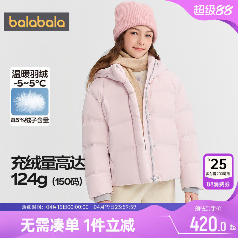 商场同款巴拉巴拉女童羽绒服中大童外套秋冬款童装儿童连帽上衣厚