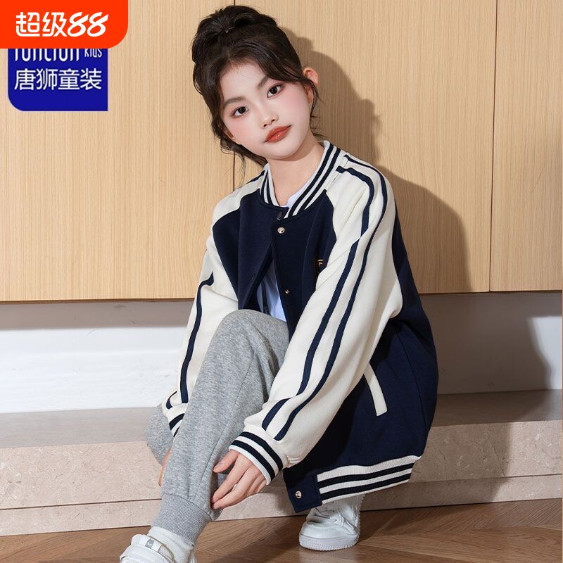 TONLION唐狮棒球服男女童外套秋冬款上衣中大童装加绒运动服薄款