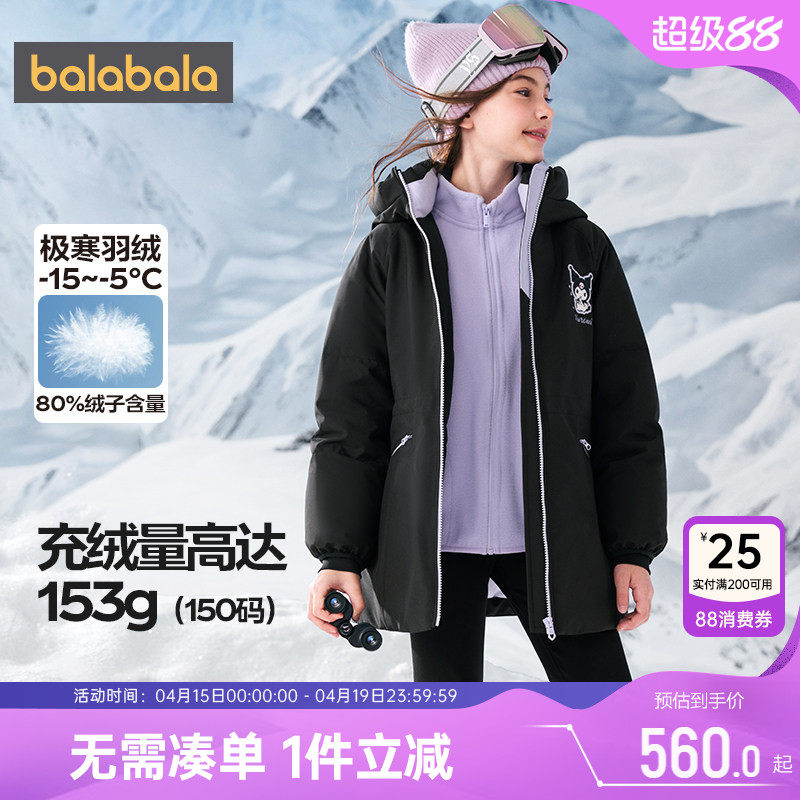 【库洛米IP商场同款】巴拉巴拉女童羽绒服秋冬款童装中大童外套厚
