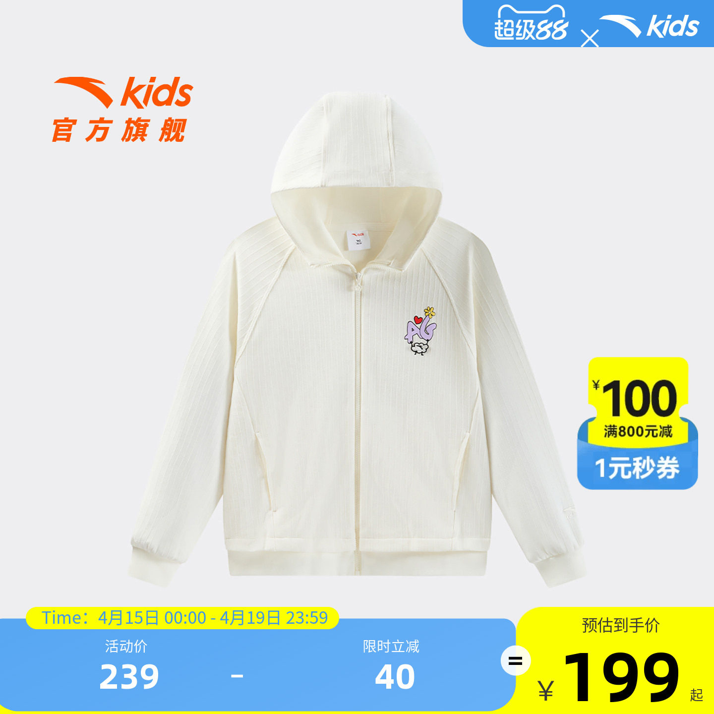 安踏儿童女大童针织连帽运动上衣2025秋冬新款舒适百搭中大童外套