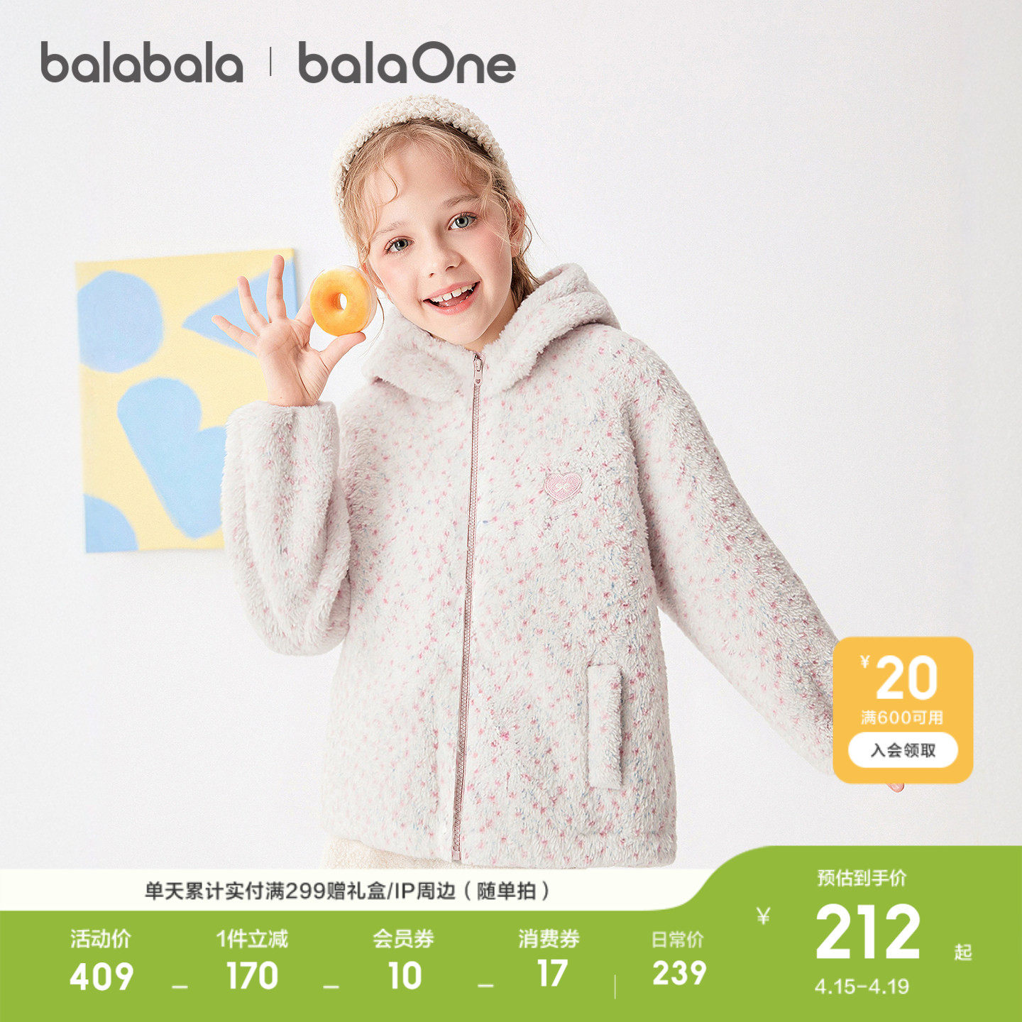 巴拉巴拉童装女童棉服儿童中大童外套新款棉袄衣服秋冬保暖甜百搭
