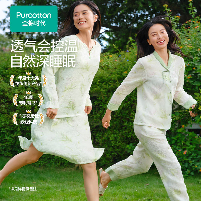 全棉时代女士睡衣套装2025年秋季新款女士双层纱布居家服家居套装
