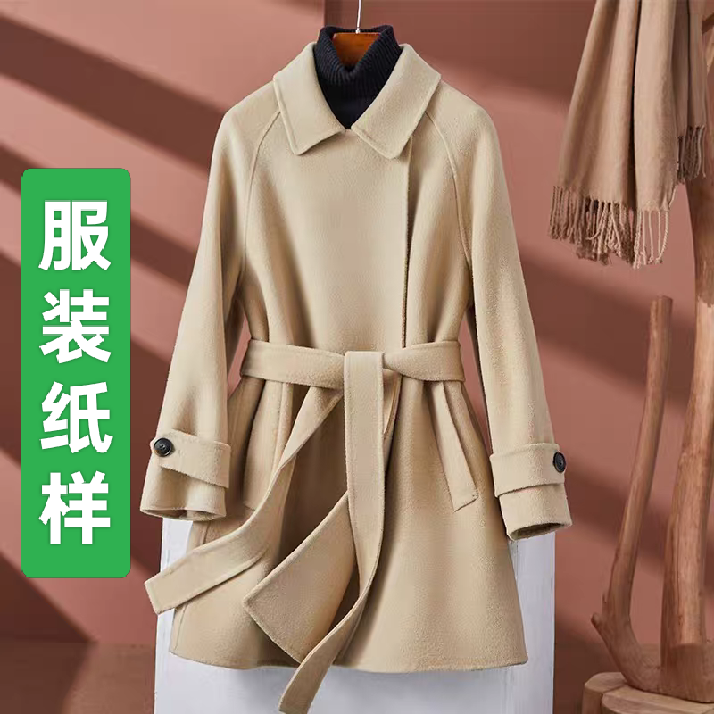 秋冬女装双面羊绒短大衣纸样时尚气质宽松大衣裁剪图纸样板Y52