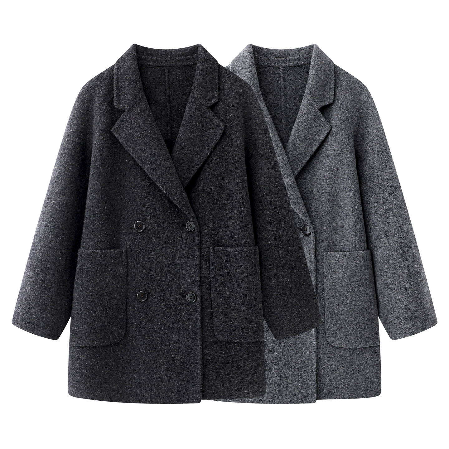 秋冬新款双面羊绒大衣女短款西装领羊毛双排扣毛呢外套气质双面呢