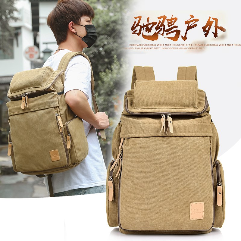 复古男士帆布双肩包大学生书包休闲大容量旅行包轻便登山背包男包