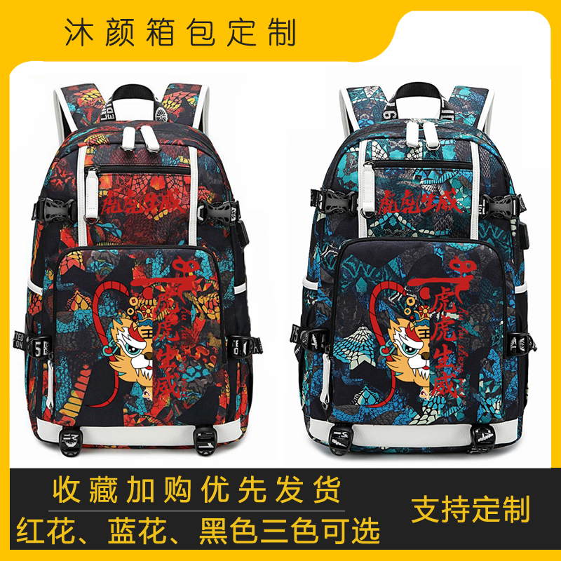 国潮书包虎虎生威男双肩包背包潮流时尚新款酷帅学生小初高中大号