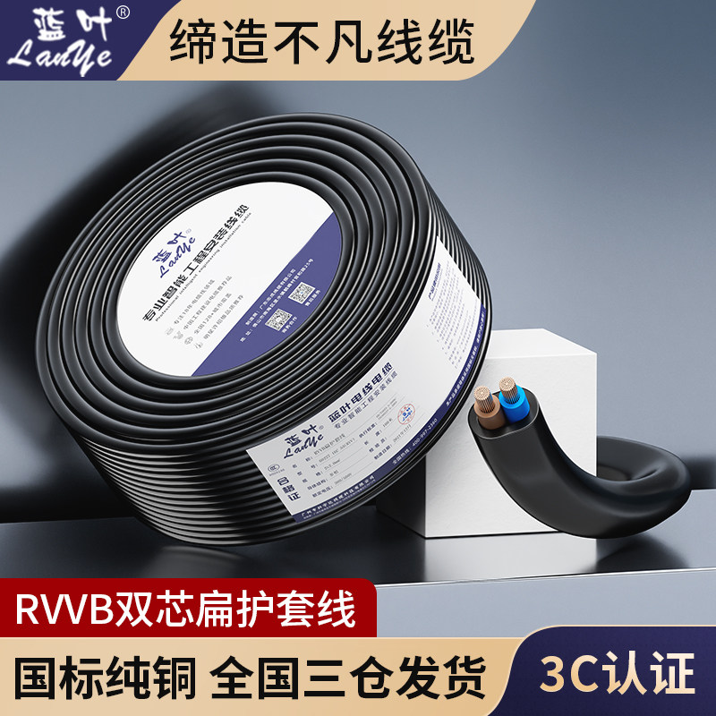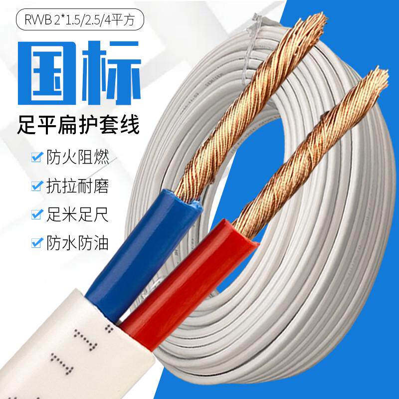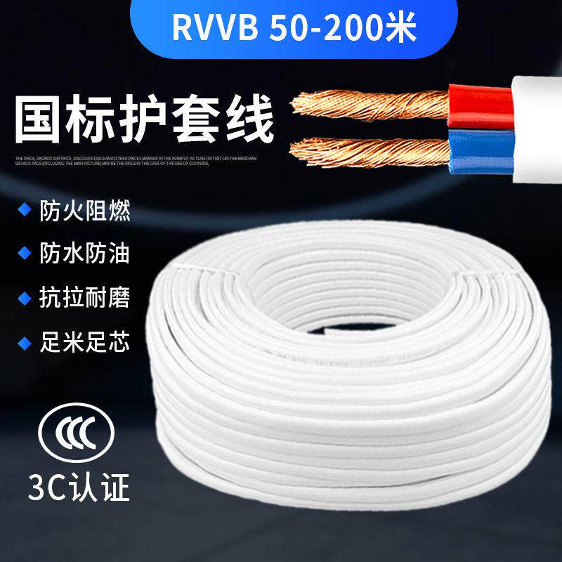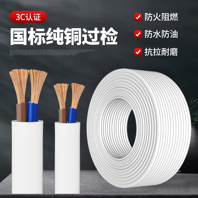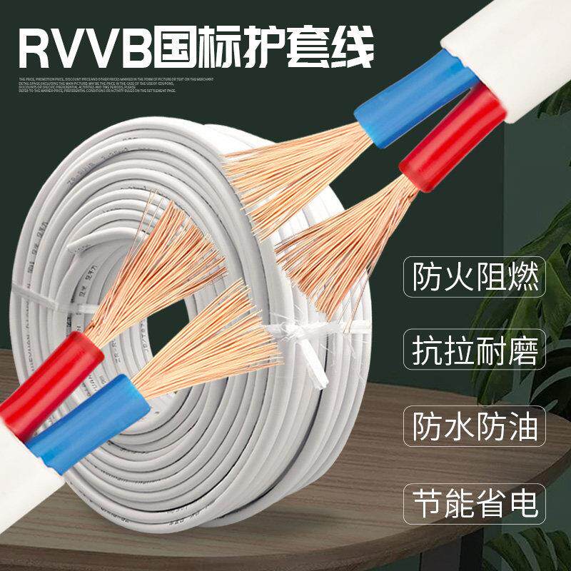 RVVB纯铜芯护套线2芯电线软线1/1.5/2.5/4平方家用阻燃白色电缆线