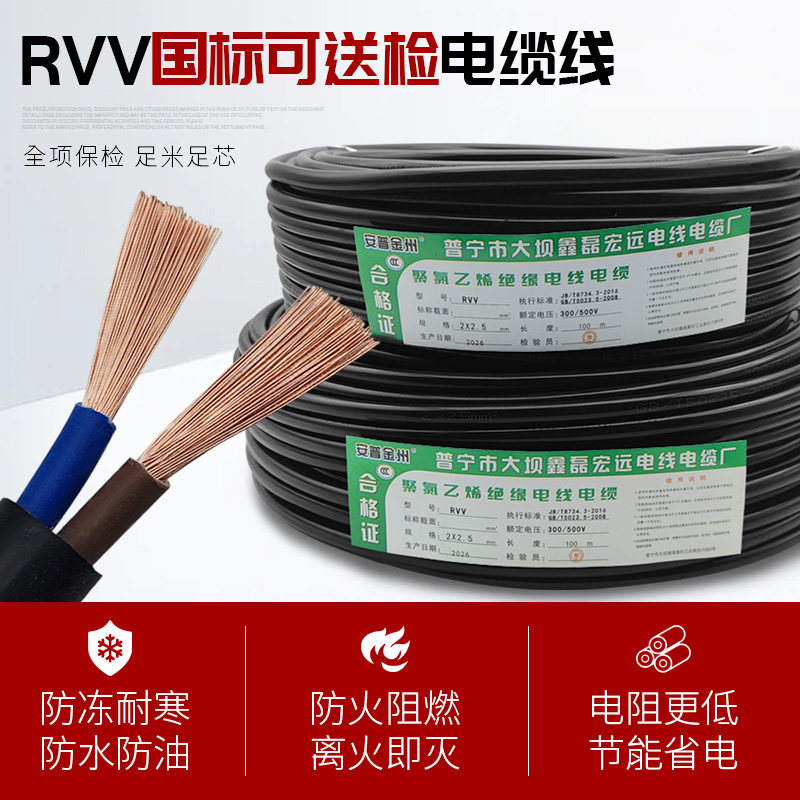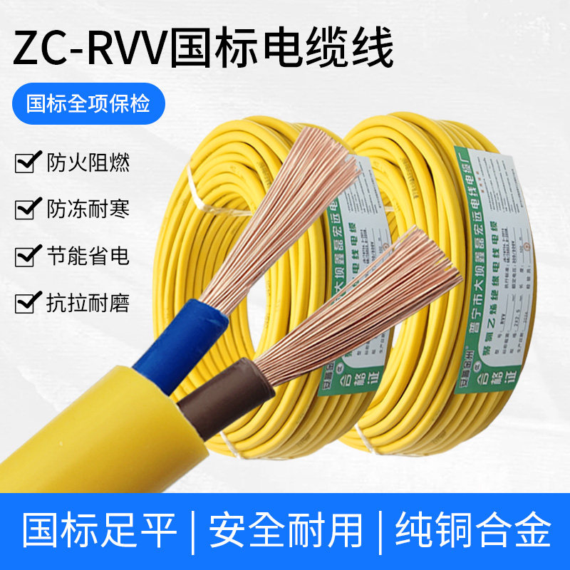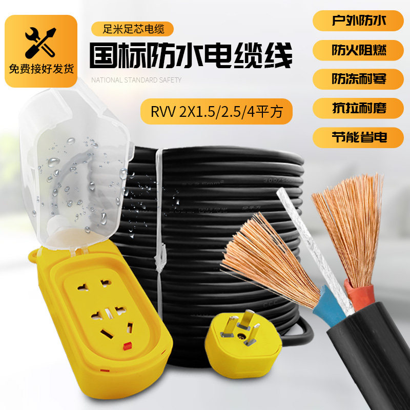 国标RVV2芯电线1.5/2.5/4平方户外防水耐磨3心护套软线电缆线散装