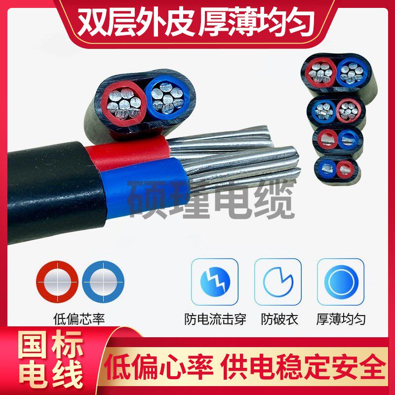 国标铝线2芯电线家用护套线10/16平方毫米防老化进户线室外电源线