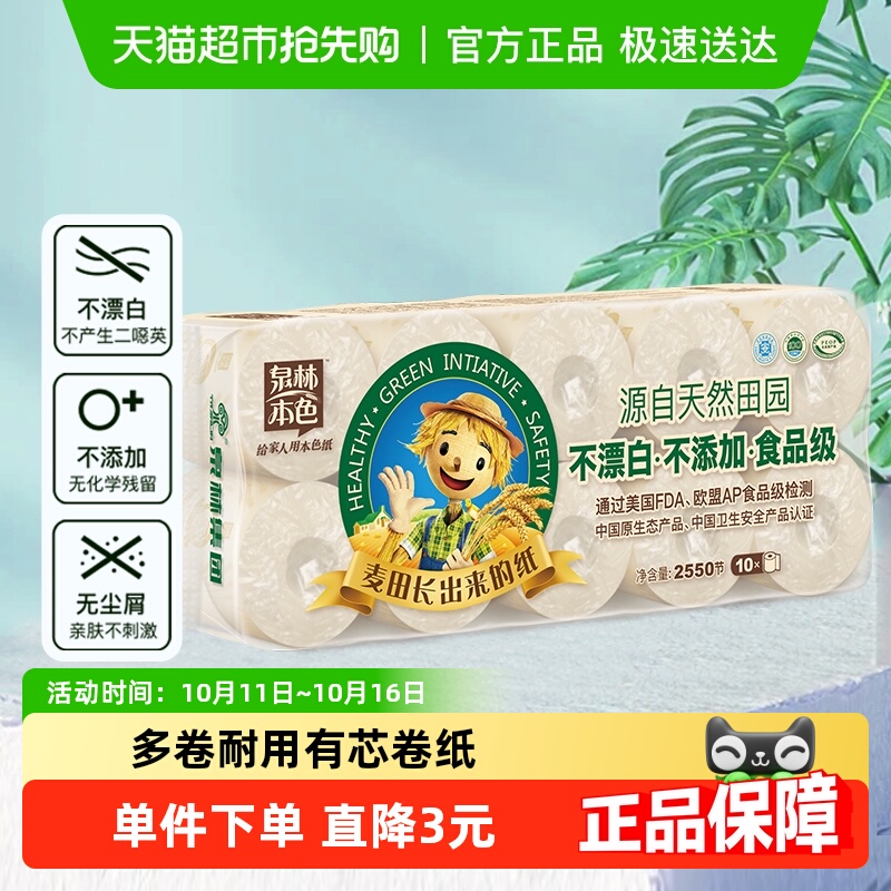 雨森本色2250克18卷家用竹浆实惠装无芯卷纸卷筒纸卫生纸擦手厕纸