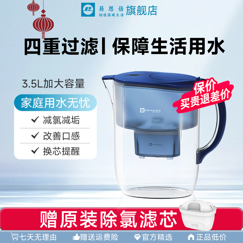 易思倍3.5L过滤水壶厨房自来水净水器家用净水壶活性炭除氯过滤芯