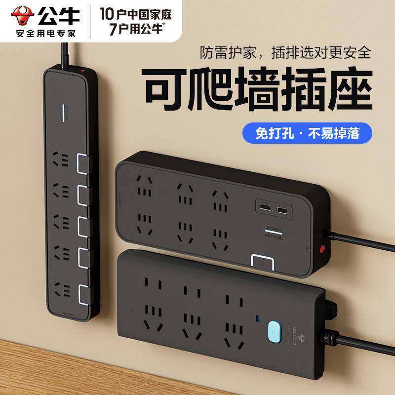 公牛插排多功能插座带线宿舍家用插线板可爬墙固定拖线板排插正品