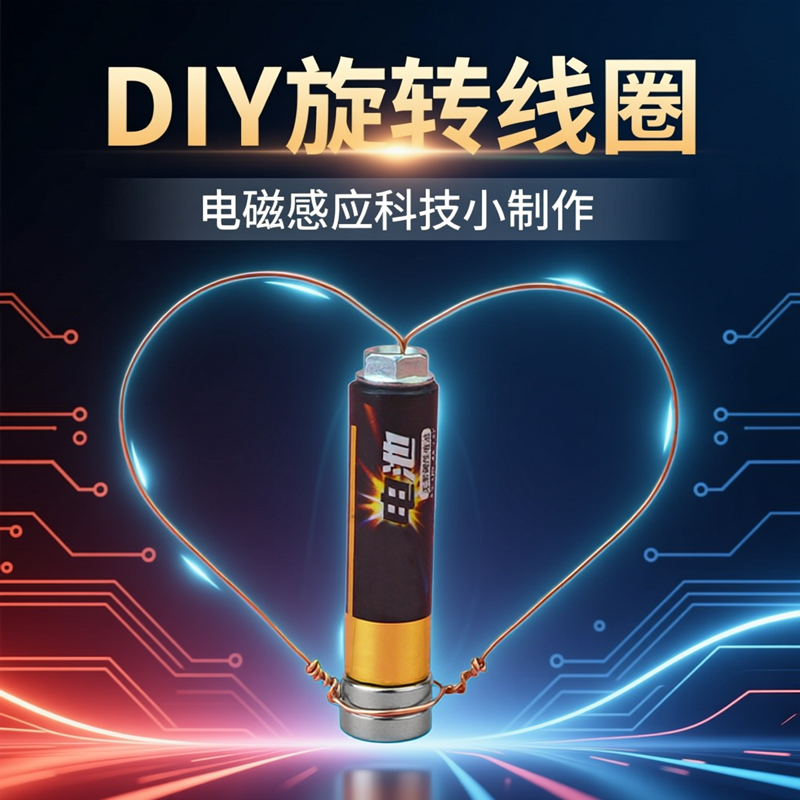小学生科技小制作旋转铜线圈diy儿童自制简易直流电动机教学模型