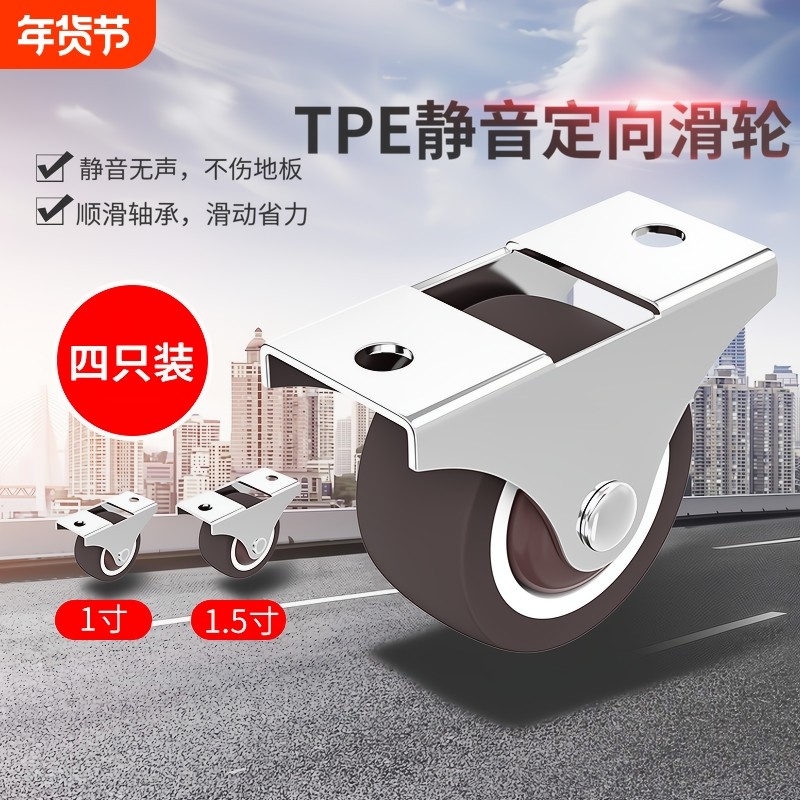 1寸静音小万向轮榻榻米抽屉滑轮柜子轮子滚轮万向脚轮橡胶定向轮
