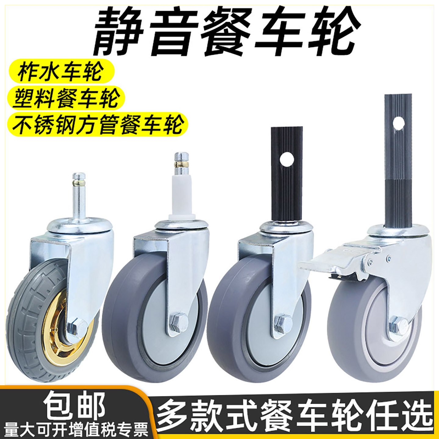 4寸通用塑料收餐车轮插杆滚轮榨水墩布车轱辘万向轮轮子静音脚轮3