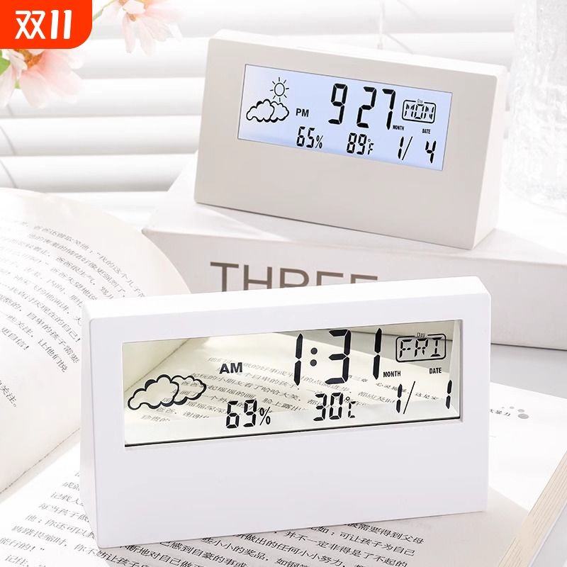 LED静音智能天气电子钟表ins桌面时钟万年历台式透明学生用小闹钟