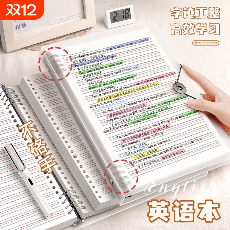 英语活页本替芯16k可拆卸a5/20孔大容量初高中b5单词英文本可换替芯大学生用四线三格活页夹内芯线圈笔记本子