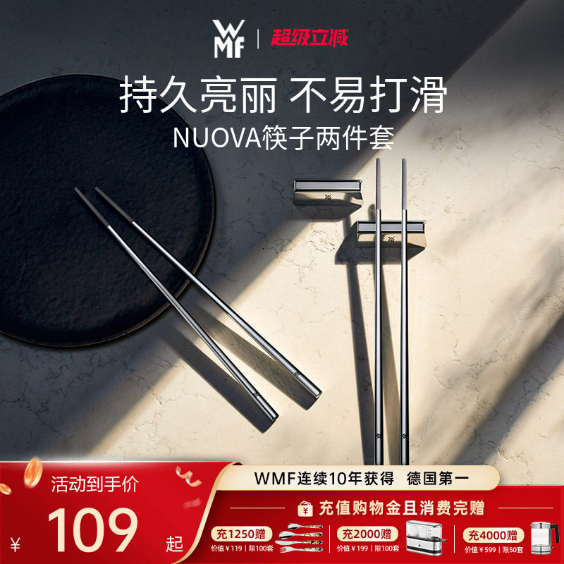 德国WMF福腾宝不锈钢筷子隔热家用高档抗菌防霉套装合金筷含筷架