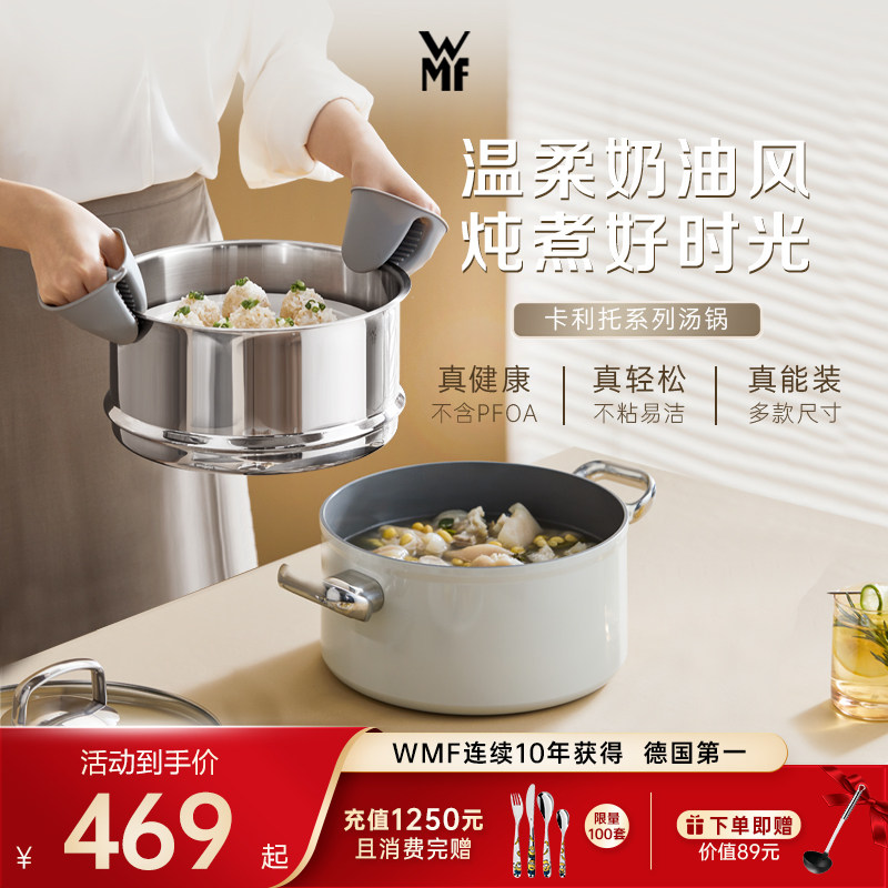 德国WMF蒸锅不锈钢汤锅炖锅家用蒸煮一体24cm大容量官方旗舰店