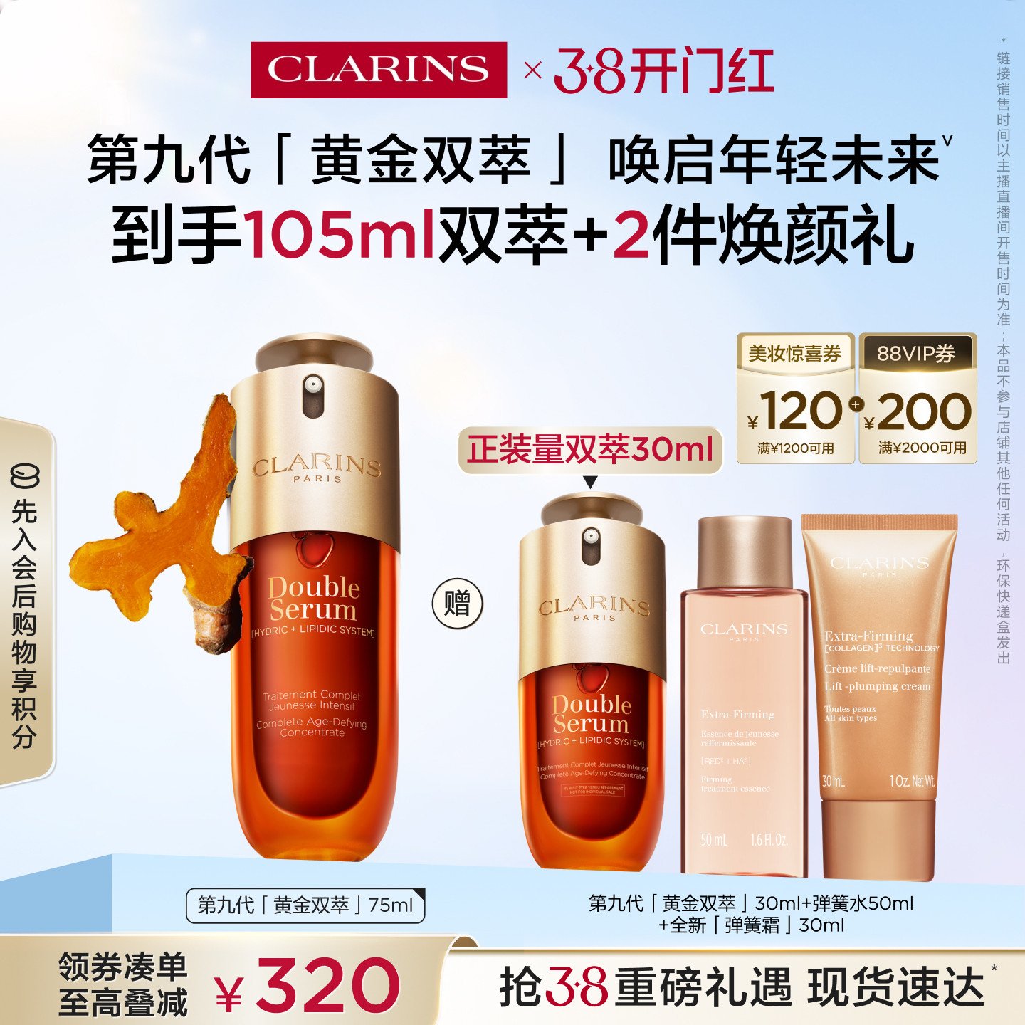 【自营】Clarins 娇韵诗第九代赋活精华黄金双萃75ml(品牌防伪)