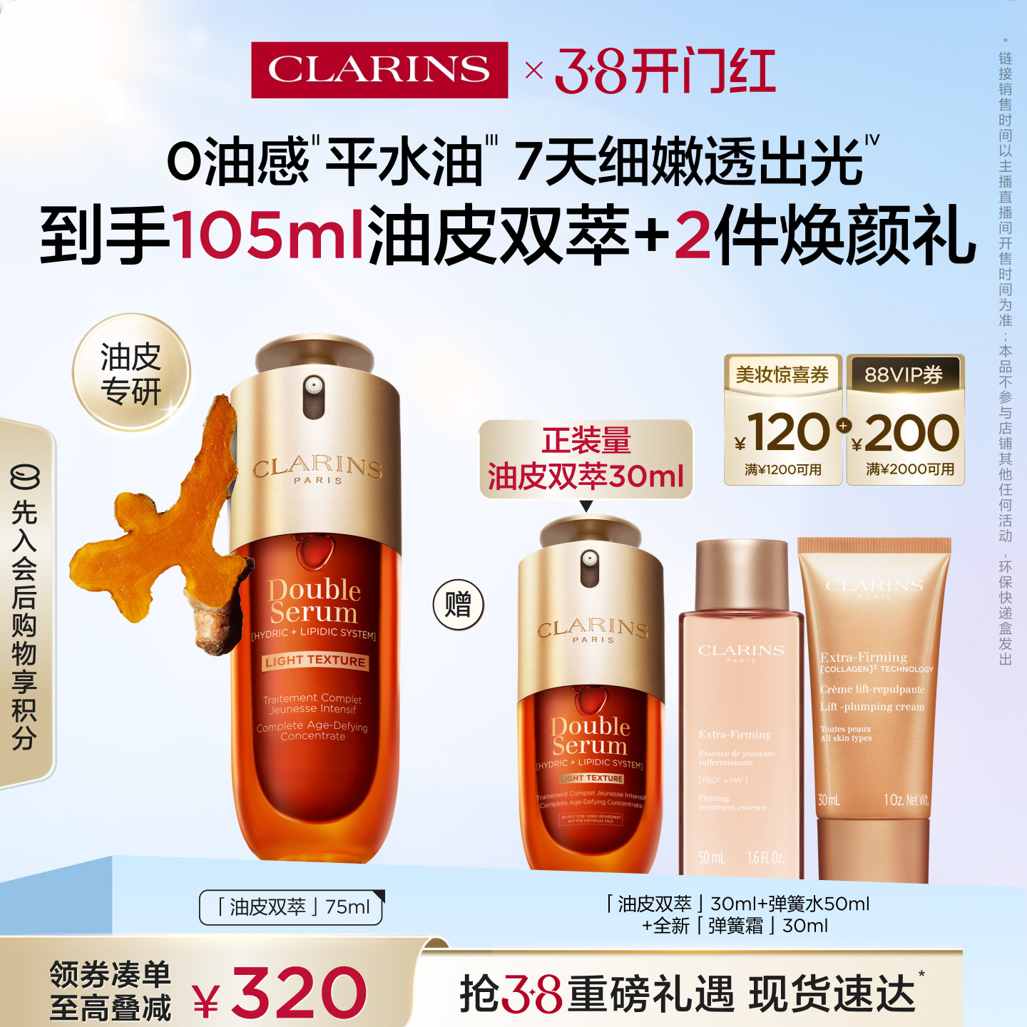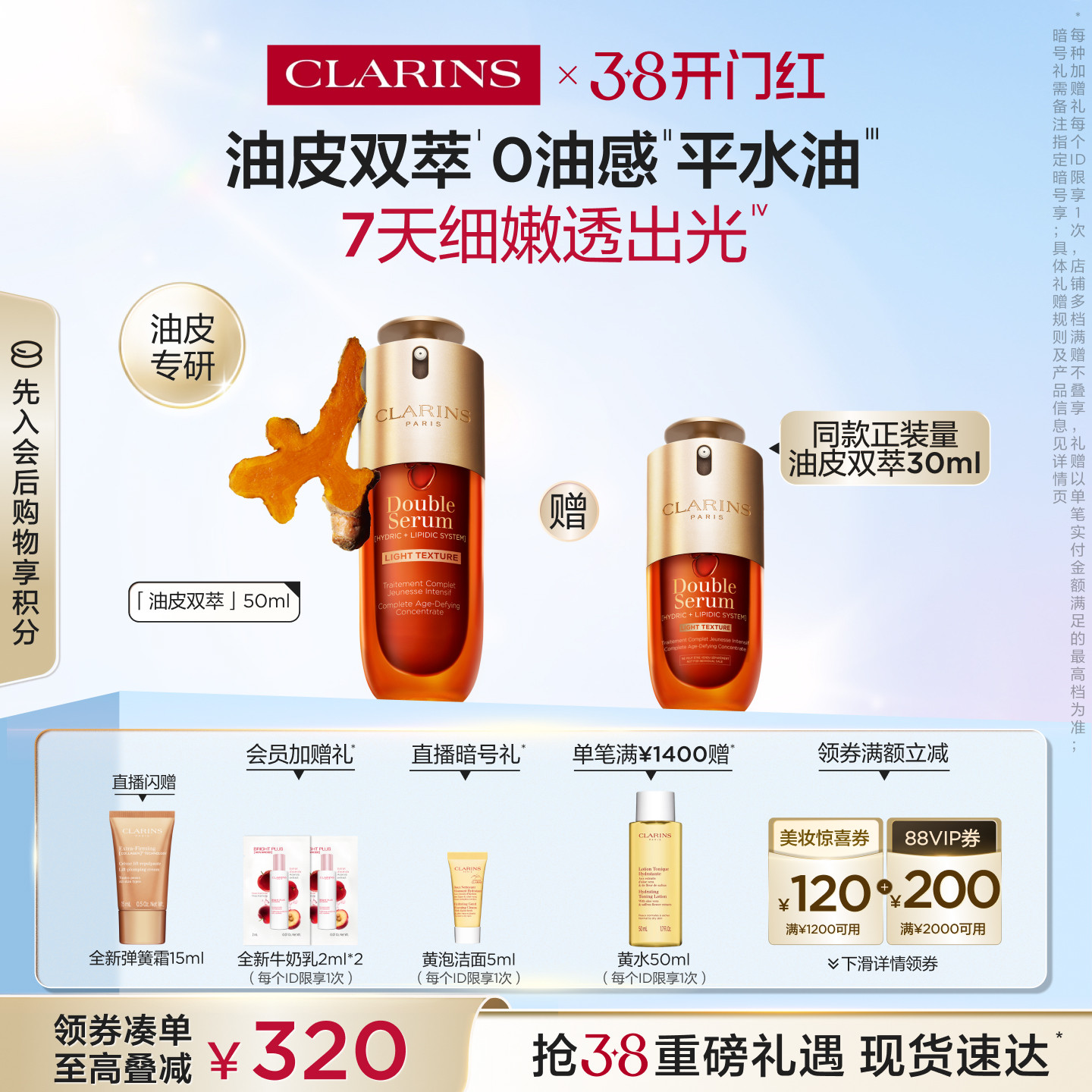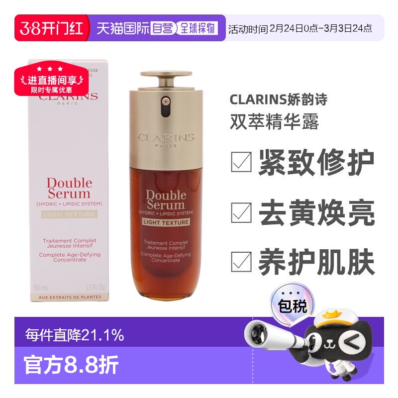 香港直邮Clarins娇韵诗双萃精华露50/100ml 清爽版(第九代)正品