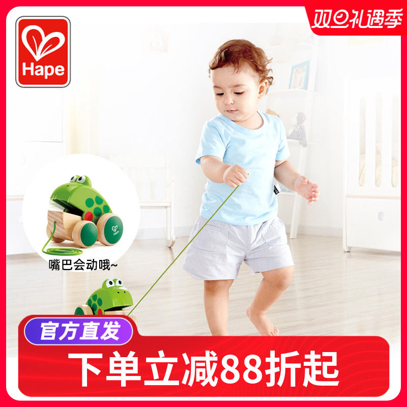 Hape拖拉青蛙儿童宝宝手拉着走的牵引绳拉线蜗牛行车学步婴儿玩具