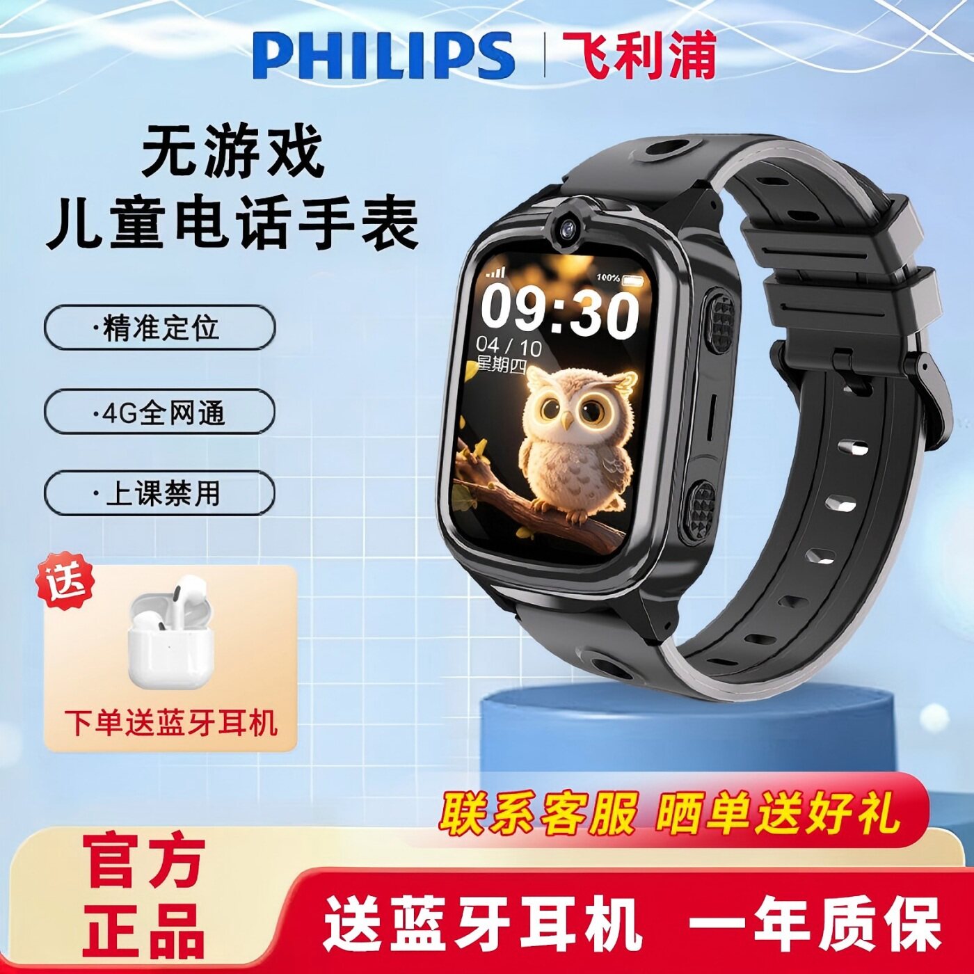 【送蓝牙耳机】飞利浦儿童电话手表W2208A定位可插卡视频通话长续航智能手表Z8中小学男生女孩上课禁用无游戏