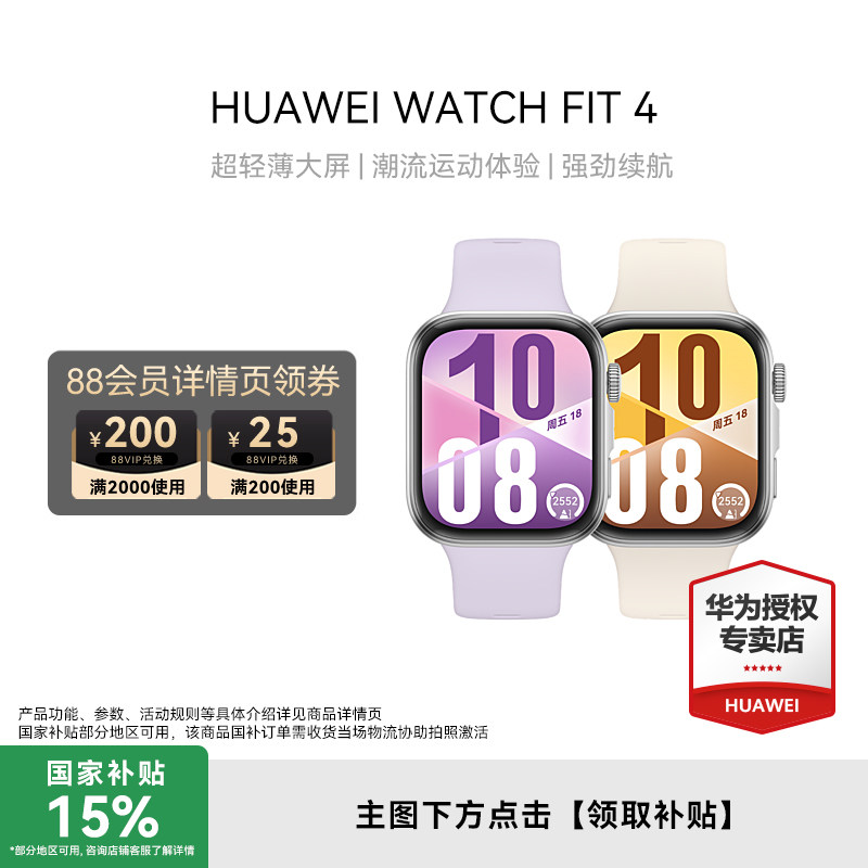 【政府补贴15%】华为WATCH FIT4 智能手表轻薄大屏运动长续航蓝牙通话血氧心率监测健康情绪管理官方旗舰正品