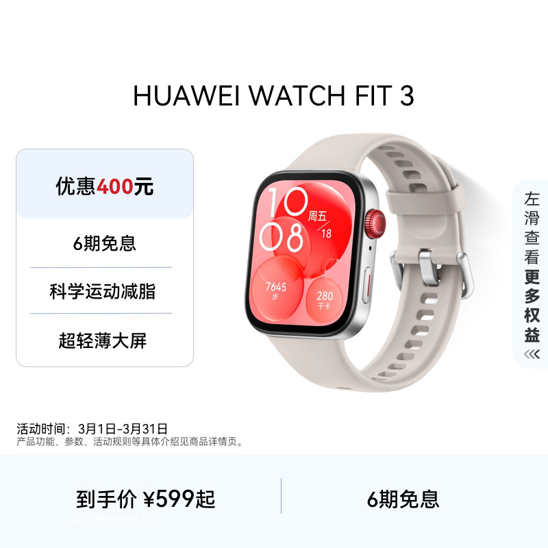 【百亿补贴】华为WATCH FIT3智能手表轻薄大屏运动减脂长续航蓝牙通话运动手表