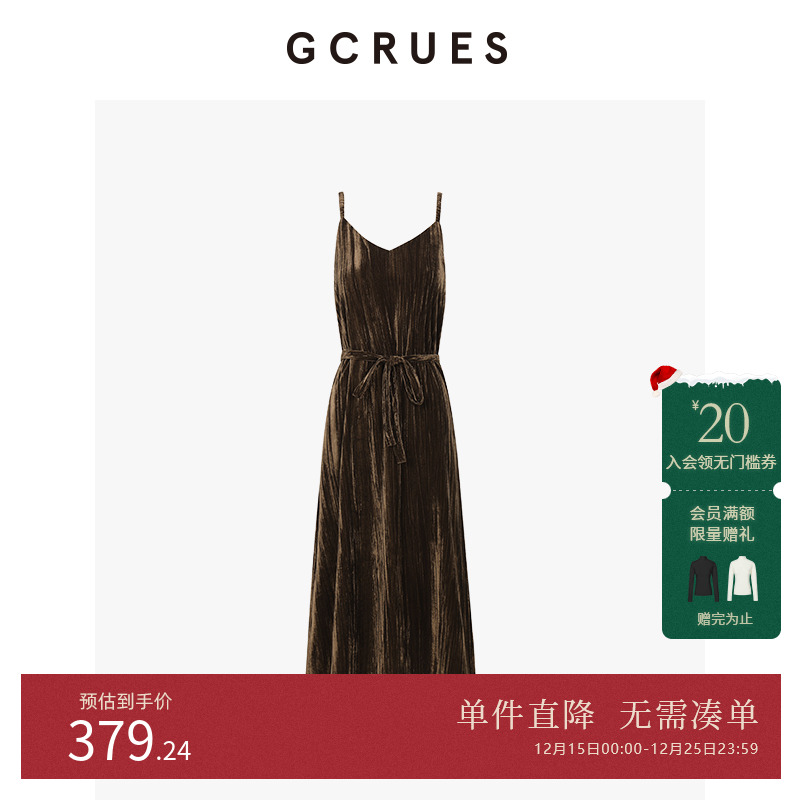 GCRUES商场同款V领丝绒吊带裙2025秋冬显瘦气质连衣裙G09D08A0152