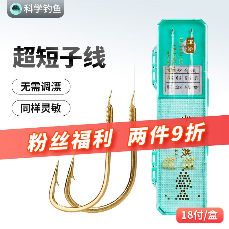 科学钓鱼超短子线双钩日本进口鱼钩鱼线金袖海夕轻口跑铅滑漂鲫鱼