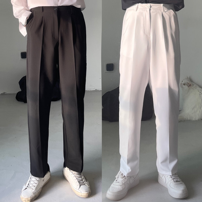 日系休闲cleanfit复古宽松百搭直筒裤 男潮牌双褶阔腿韩版西装裤