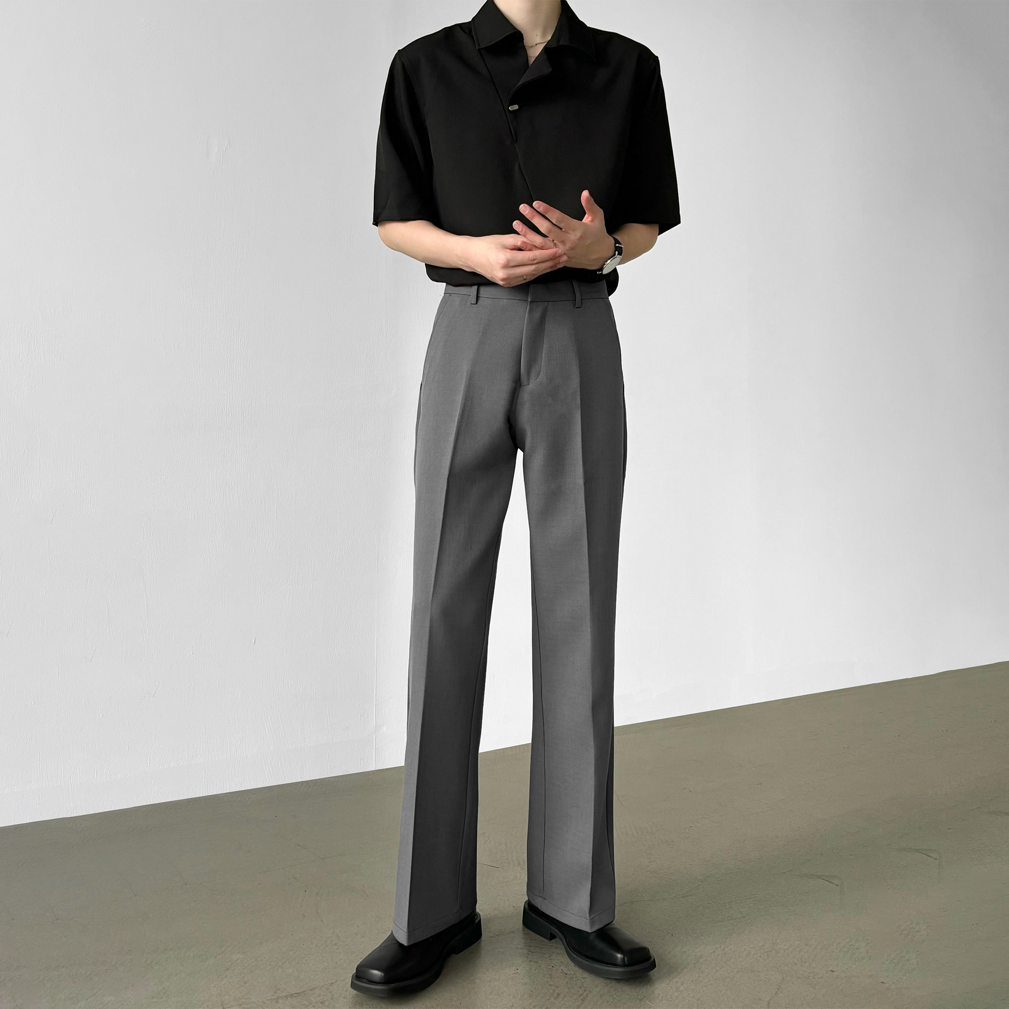 男笙 25秋冬季高腰直筒微喇西裤韩版休闲宽松显高微喇灰色西装裤
