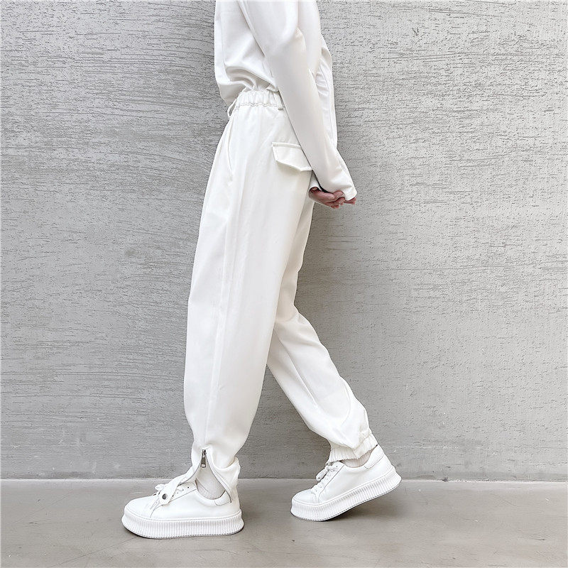 白色运动裤子男ins休闲百搭束脚裤脚口拉链设计韩版西装裤九分裤