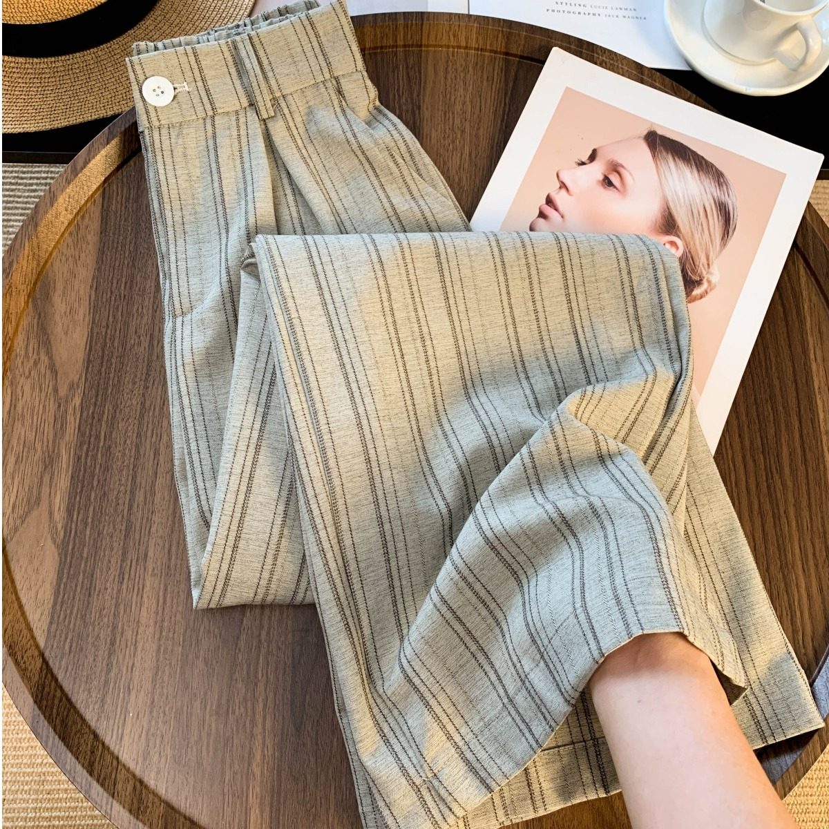 2026春装新款韩版西装裤条纹复古垂感休闲裤女宽松阔腿休闲裤