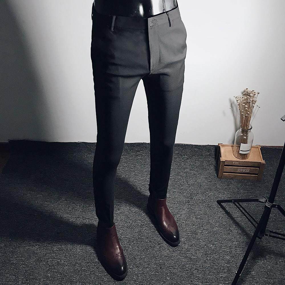 春秋季修身直筒男西裤青年商务弹力韩版西装裤垂感免烫男装长裤子