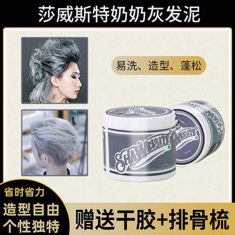 奶奶灰发泥一次性染色发蜡骷髅头男士定型白色灰色彩色造型啫喱膏