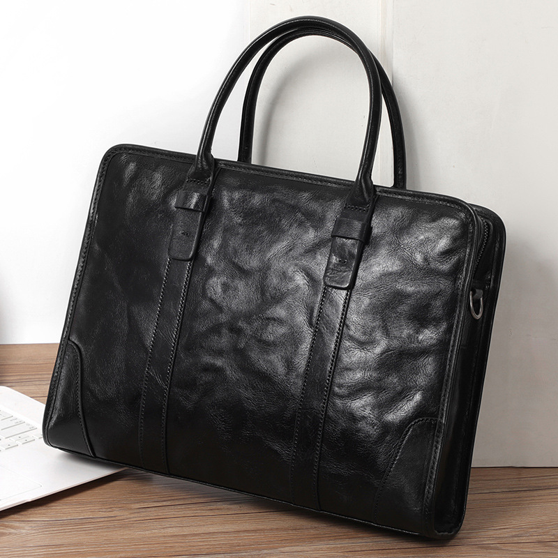 男士手提包公文包真皮大容量头层牛皮包单肩斜挎商务男包电脑包潮