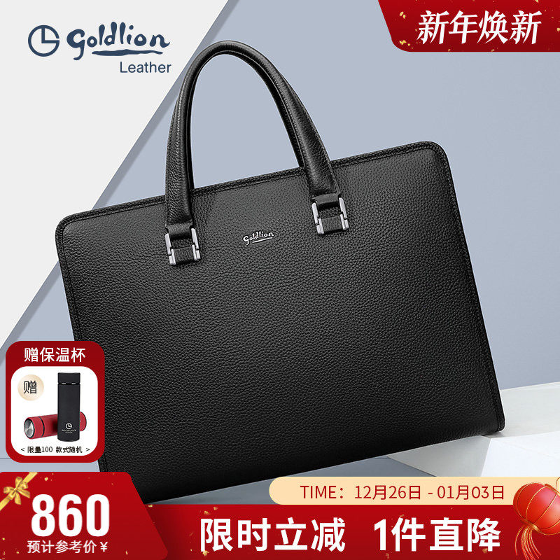 金利来新款商务公文包男士真皮大容量手提包头层牛皮办公出差男包