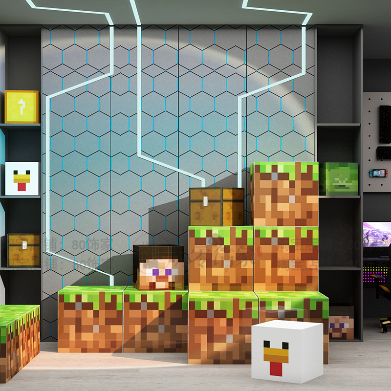 网红电竞房间装饰我的世界墙贴画网吧咖电玩背景面布置立体盒子堆
