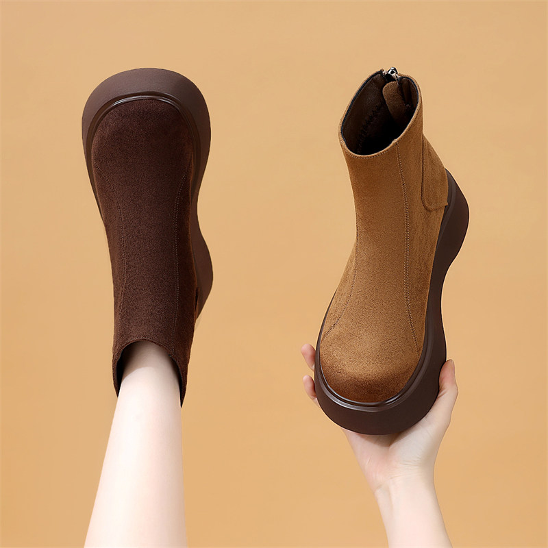 显脚小厚底复古大棉靴女2025冬季新款时尚加绒舒适轻便短靴大码41