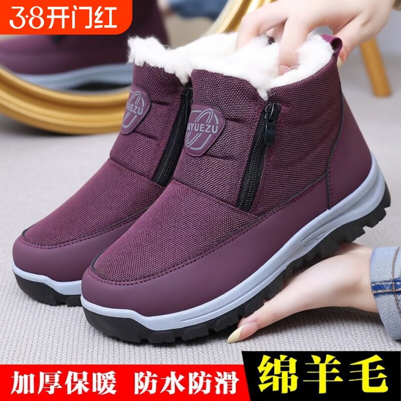 意迪森绵羊毛棉鞋女冬加绒中老年棉靴女加厚保暖棉鞋防滑妈妈棉鞋
