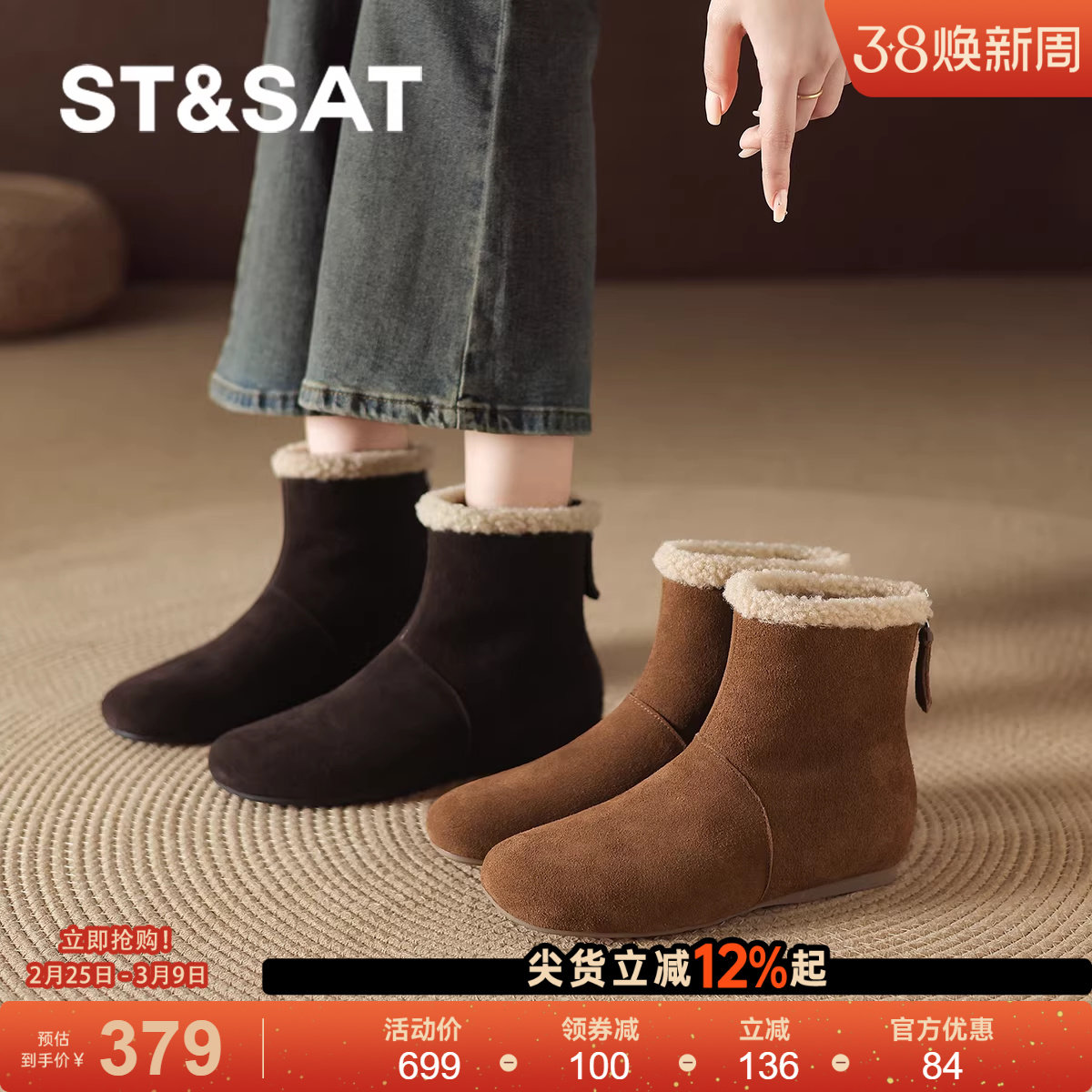 莱尔斯丹奥莱秋冬新款时尚加绒保暖圆头绒面低跟棉靴女靴5T31601F