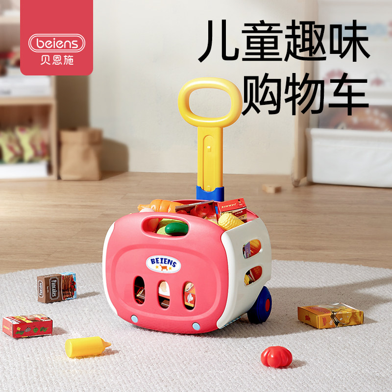 贝恩施儿童购物车女孩厨房切切乐手推车宝宝过家家益智玩具3到6岁