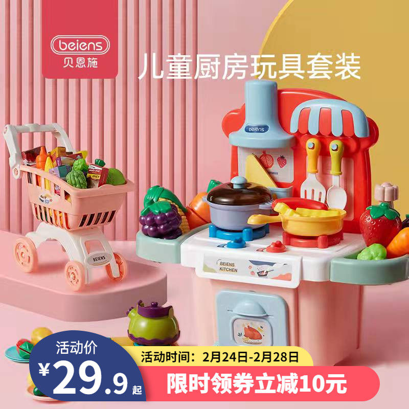 贝恩施儿童d厨房玩具女孩仿真过家家套装宝宝做饭迷你厨具女童3岁