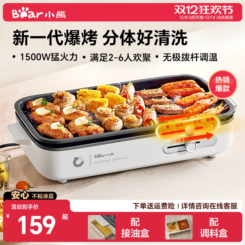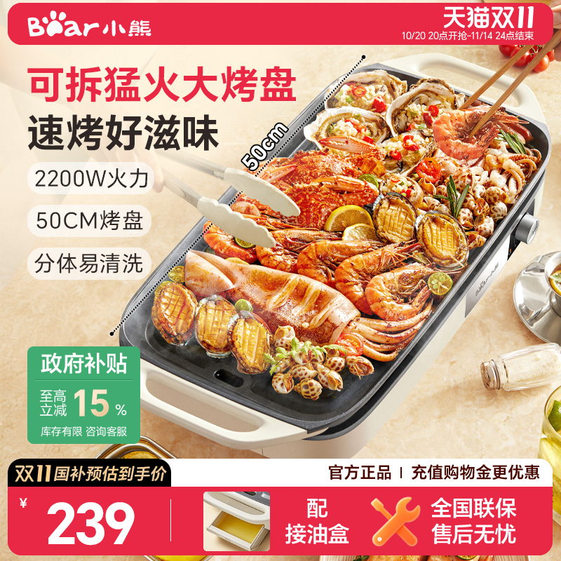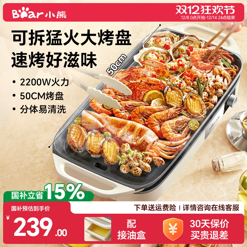 小熊烤肉锅电烤盘家用烤肉炉烤鱼盘一体室内轻烟可拆洗户外烹饪机