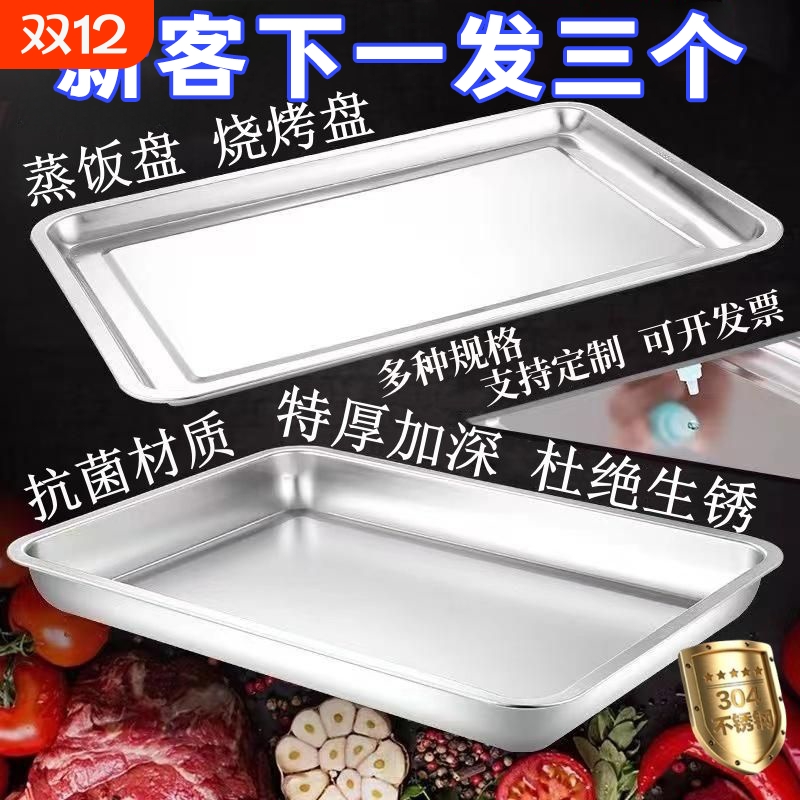方盘304不锈钢托盘长方形菜盘蒸饭盘商用加深烧烤盘饺子盘烤鱼盘
