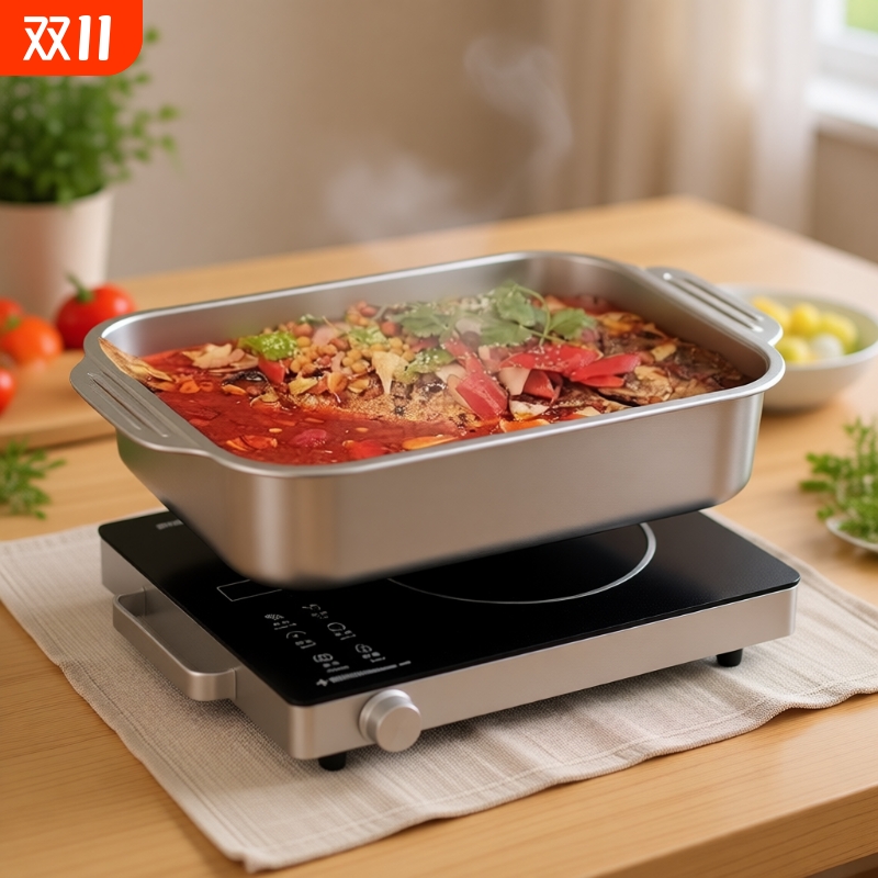 316不锈钢烤鱼盘食品级材质长方形多功能家用加厚电磁炉蒸锅通用