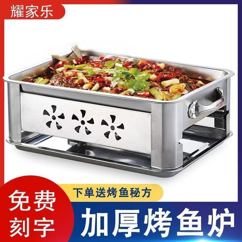 加厚不锈钢烤鱼炉酒精炉商用木炭烤鱼炉长方形家用碳烤架子烤鱼盘